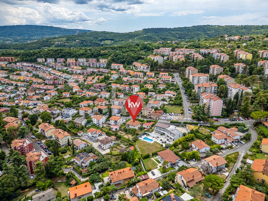 V pritličju so dve garsonjeri in enosobno stanovanje, v nadstropju pa štirisobno stanovanje z lepim pogledom na Koper in morje.