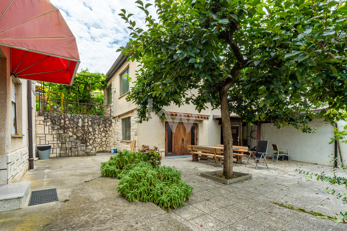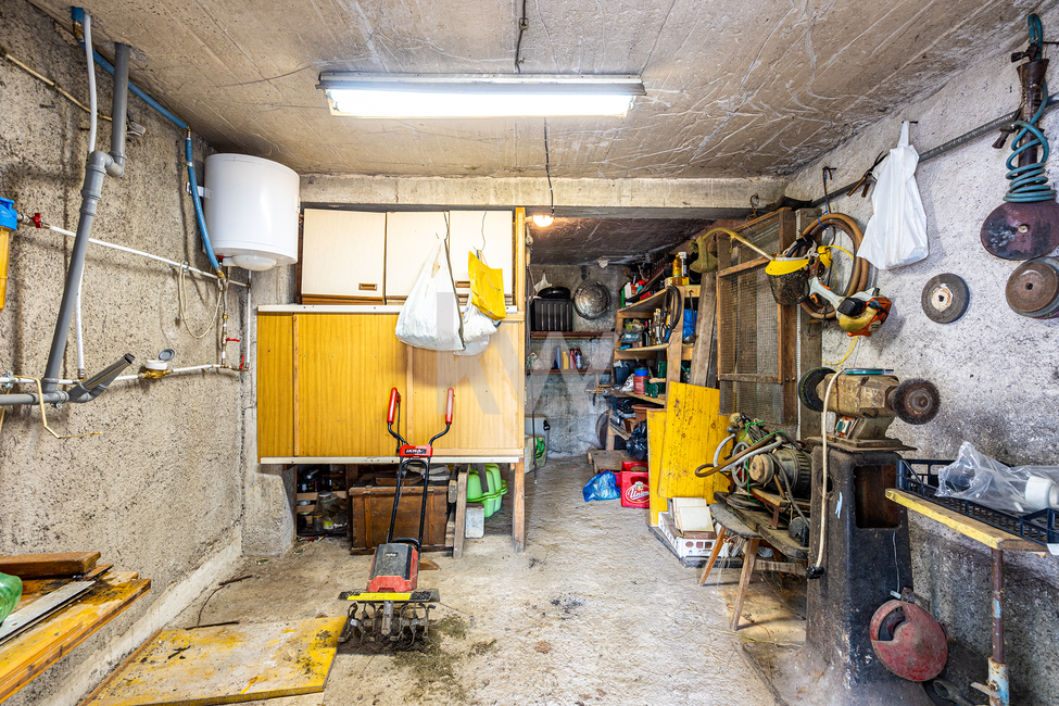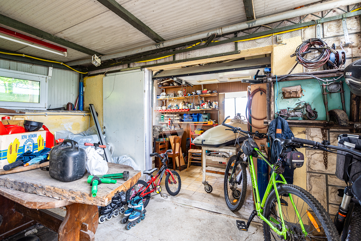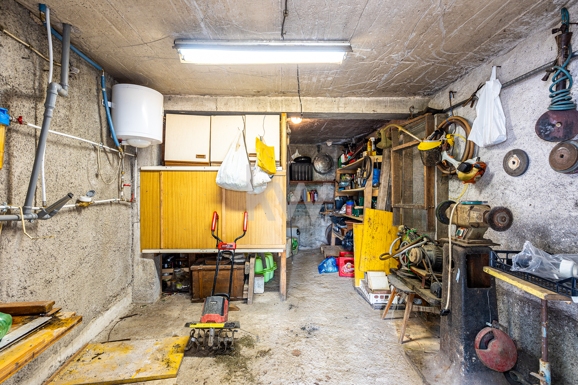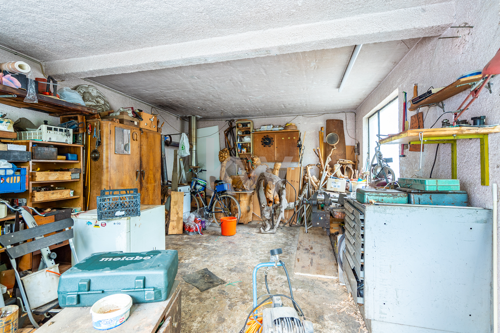 Ob hiši je tudi pomožni objekt v dveh etažah velikosti 76,80 m2. Trenutno služi kot delavnica, hramba in garaža.