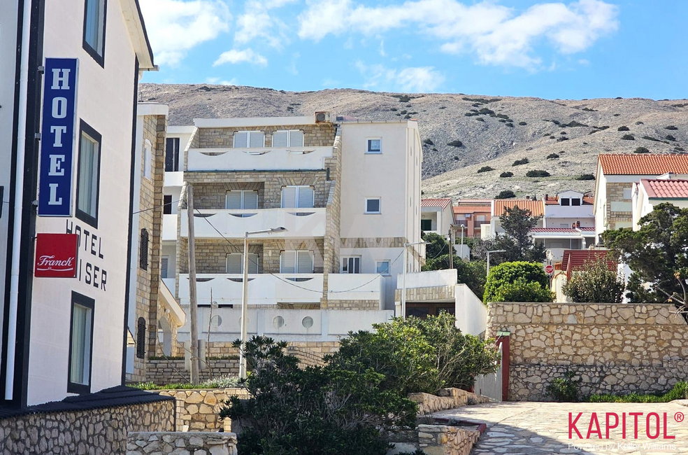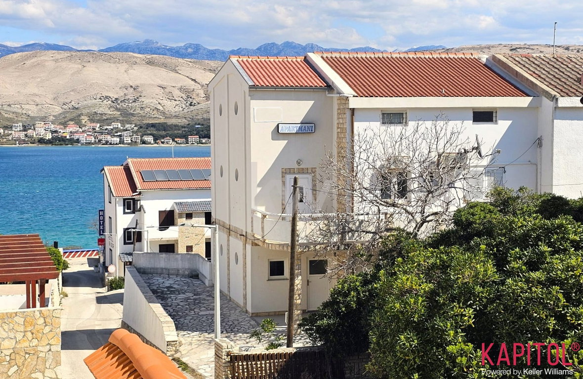 Na odlični lokaciji pri mestu Pag na otoku Pag je naprodaj apartmajska hiša s 5 apartmaji, oddaljena le 80 metrov od morja in plaže. Nepremičnina predstavlja izjemno priložnost za turistično oddajanje in lastno uporabo na eni izmed najbolj priljubljenih destinacij na hrvaški obali.