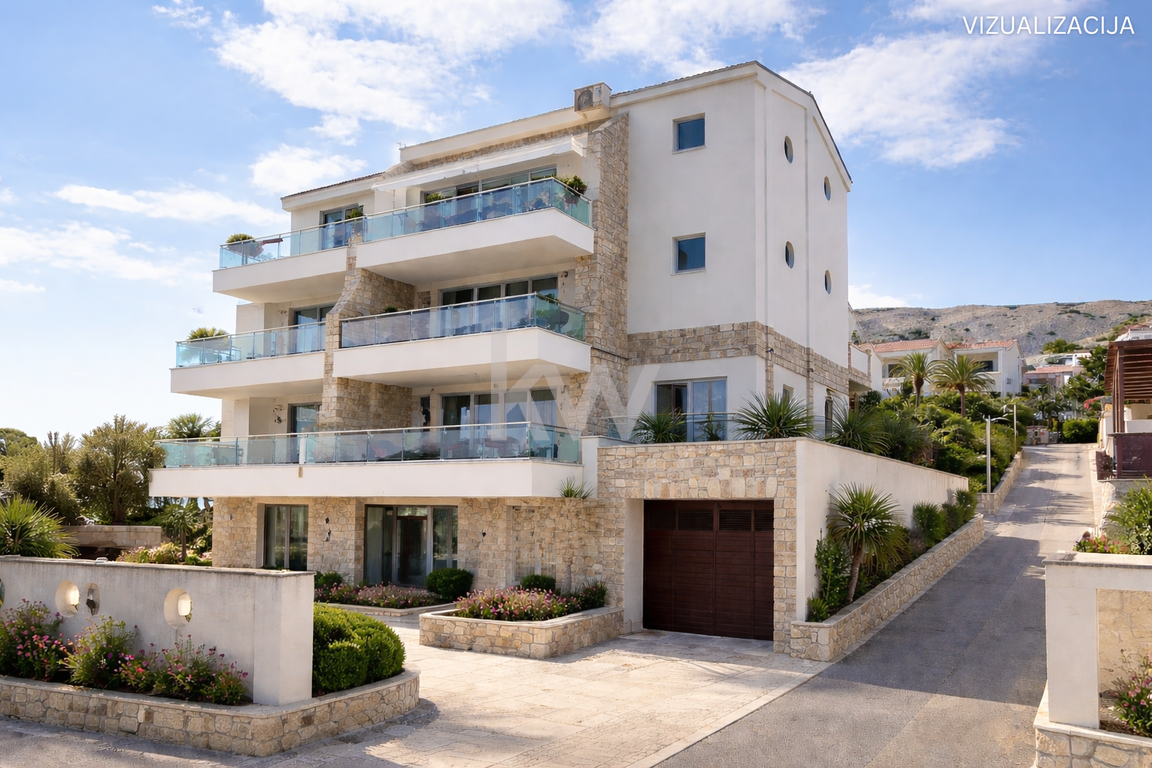 Ekskluzivno: apartmajska hiša s 5 apartmaji na Pagu – 80 m od morja!