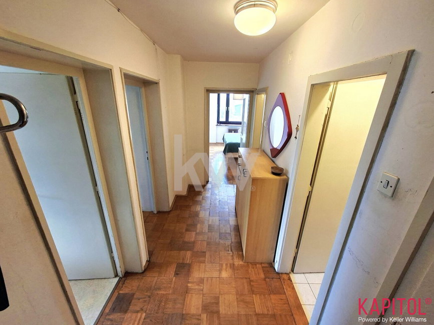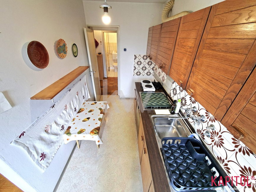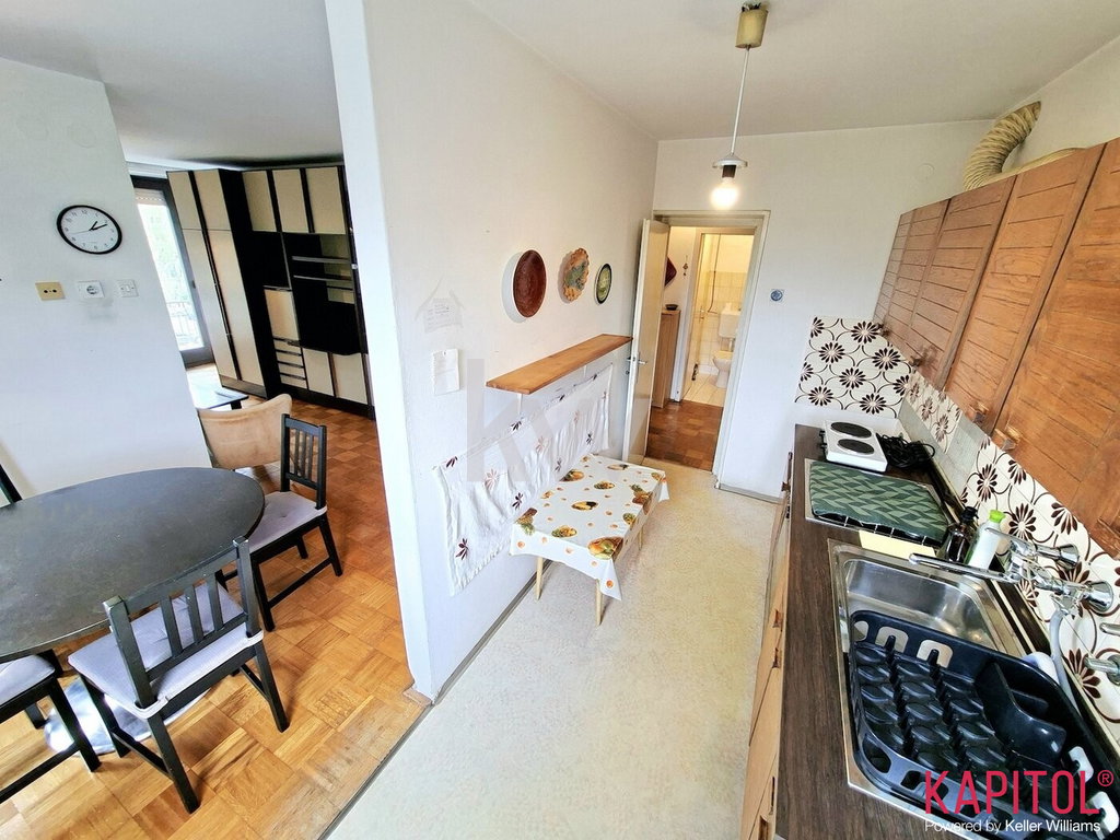 Stanovanje se prodaja delno opremljeno kot na slikah, razen: ogledalo na hodniku, pralni stroj in majhen električni štedilnik v kuhinji, ter kompletna spalnica.