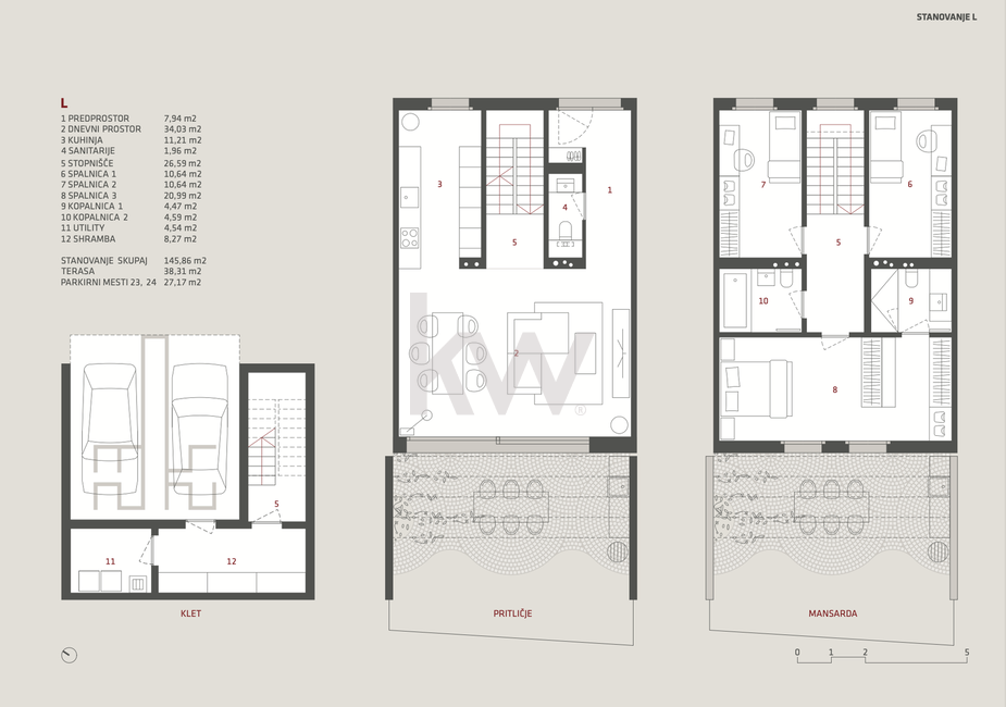 atrij (38,31 m²) – zasebna zunanja oaza za sprostitev.