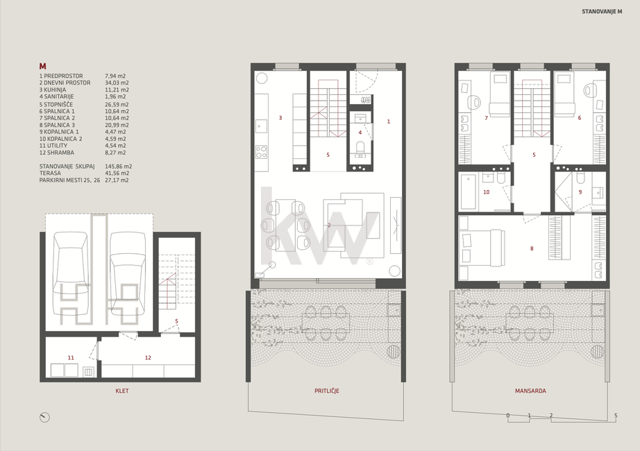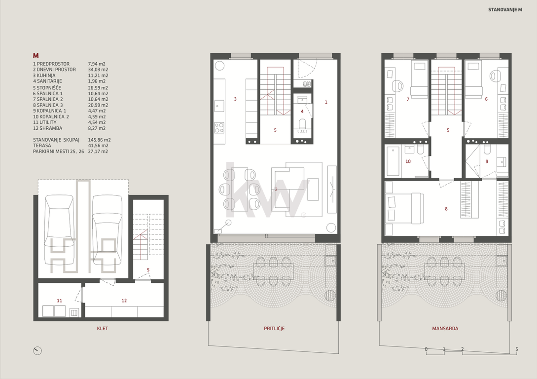 atrij (41,56 m²) – zasebna zunanja oaza za sprostitev.