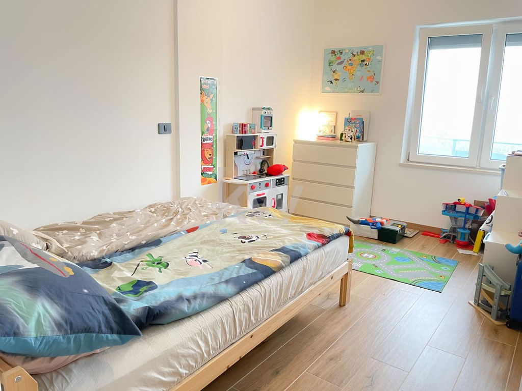 Razpored prostorov v stanovanju je optimalen: dve otroški sobi, 1 spalnica, utility, kuhinja z izhodom na balkon, dnevni prostor z jedilnico ter izhodom na balkon, kopalnica in wc.