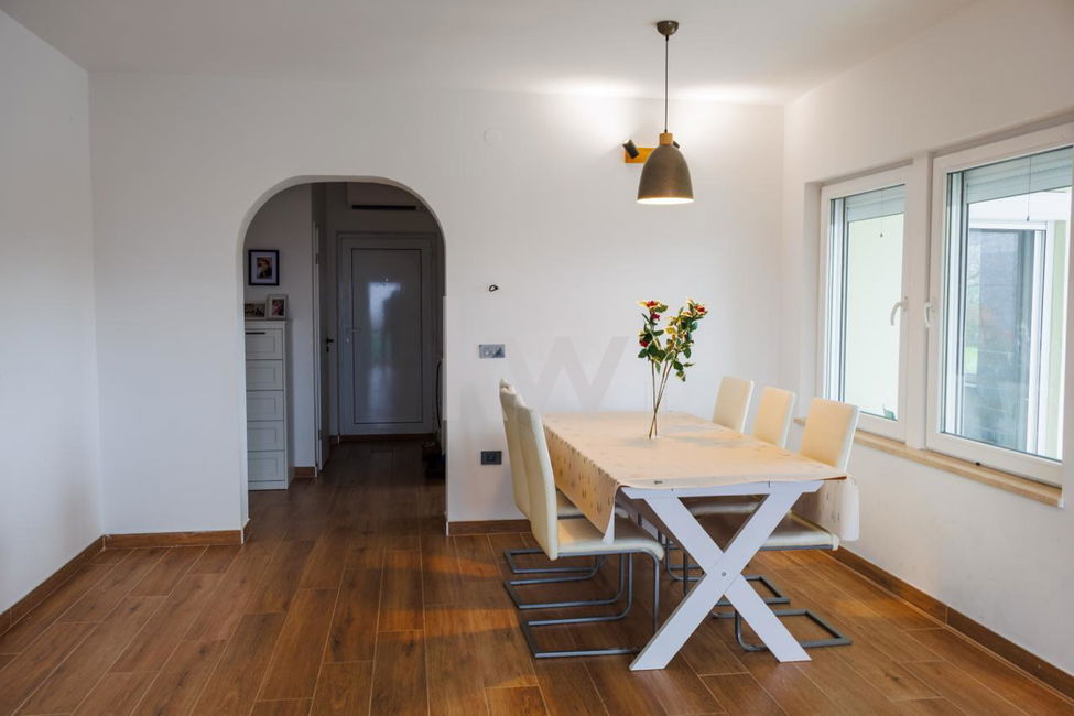Posredujemo pri prodaji zelo lepega in prostornega 5-sobnega stanovanja z garažo, velikim dvoriščem in lastnim bazenom. Nepremičnina se nahaja v 1. nadstropju samostojne večstanovanjske hiše, v naselju Zgornje Škofije pri Kopru. Stanovanje je letnik 1985 in je bilo kompletno prenovljeno leta 2025 s kakovostno opremo in materiali ( fasada je obnovljena 2006). Stanovanje je velikosti 144 m2 (neto tlorisne površine) od tega je 101,60 uporabne površine, klet je velika 4,4 m2 in balkon 38 m2. Pred hišo se nahaja lastniška nadkrita garaža velikosti 76 m2, ob hiši pa je veliko lastniško dvorišče velikosti 568 m2, kjer je umeščen tudi bazen z možnostjo ogrevanja. Stanovanju pripada lastniški števec za vodo in elektriko ter speljana je tudi optika. Gretje je urejeno s toplotno črpalko in talnim gretjem. Celotno dvorišče je ograjeno in pred hišo se nahaja vhod do hiše oz. skupno dvorišče velikosti 108 m2, katero je namenjeno vsem solastnikom hiše. V hiši so umeščena tri stanovanja, katera so tudi etažno razdeljena z ločenimi vhodi. Dostop je urejen neposredno iz glavne ceste. Stanovanje se prodaja opremljeno in možnost prevzema je v pričetku naslednjega leta.
